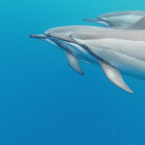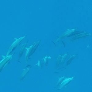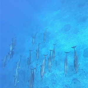 すぐに群れのところに到着し、たくさんのイルカと一緒に泳ぐことができました。目の前でたくさんのイルカが泳いでいるのを見れて、本当に感動しました!!