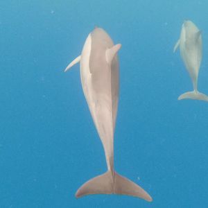 イルカの横を泳ぐ訳ではなく、イルカの進路に先回りしてイルカが下を泳ぐのを待っている感じでしたが、同じ場所を泳いでる感動がありました。