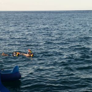 普段運動してない60代2人。同世代と思われる参加者もあって一安心したものの、1回目の入水は、しんどい、溺れる‥‥恐怖で早々にボートに上がりましたが、2回目からは浮き棒に寄りかかってプカプカと漂い、ガイドさんのフォローを得てイルカさんをたくさん見る事が出来ました。本当に楽しかった!!