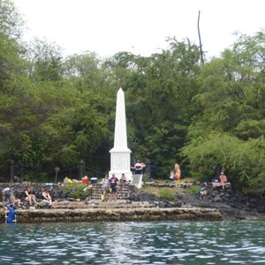 尚、英語ツアーということで少し不安がありましたが、最初に"Can you speak English?"と聞かれ"A little."と答えておきましたので、難しいことは一切言われませんでした(笑)海からボートに上がるのを手伝ってくれるときに"Very good, yeah?"と聞かれたり、"Dolphins come this way, go!"と言われたり。ケアラケクア湾では、海岸に上陸しないようになどの案内はありましたが、いずれも簡単な英語です。こちらは聞き取れますが話せないので、イルカが見えたときに「ヒュー!」などと言って楽しんでいることだけ伝えておきました(笑)また、海には他の会社の船もたくさんいて、お互いにイルカのいる場所を教え合ったり、私が平泳ぎをしていたら「バタ足のほうがいいですよ~。」と他のツアーの日本語のガイドさんが教えてくれたり、協力的な感じでよかったです。送迎がないのが難点ですが、集合場所へはシェラトン・コナ・リゾート&スパ・アット・ケアウホウ・ベイに泊まれば歩いて行けます。