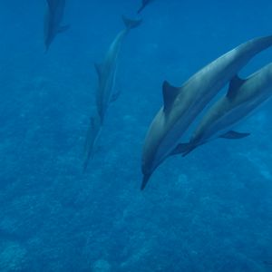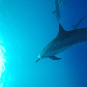 最初はシュノーケリングに慣れなくて、海に飛び込んだ時は少し海水を飲んで溺れそうになりました。海中にイルカが見えると、その光景を写真に収めようと慌ててしまい、また海水を飲んでしまうはめに・・・。