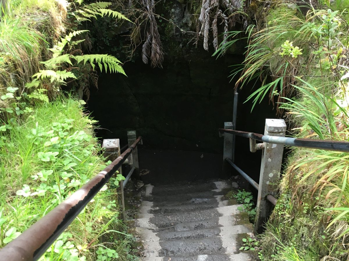最初に訪れたのではサーストン・ラバ・チューブ。溶岩の通り道にできた洞窟で、中は暗く涼しいです。