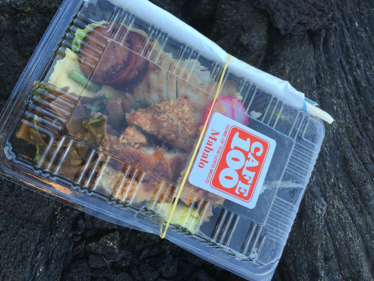 4.溶岩が海へと流れ出た痕跡(噴火の時期によって色が違うんです)とその台地に座ってのお弁当。かなり量は多いけれど、こんな景色を見ながら食事が出来るというのはまず日本じゃ味わえないですね。また、溶岩道路の途中で地熱の影響から蒸気ガスが発生している地点は近々噴火が予想されるとのこと、怖いけれど噴火と溶岩の流出をぜひ見てみたいですね。