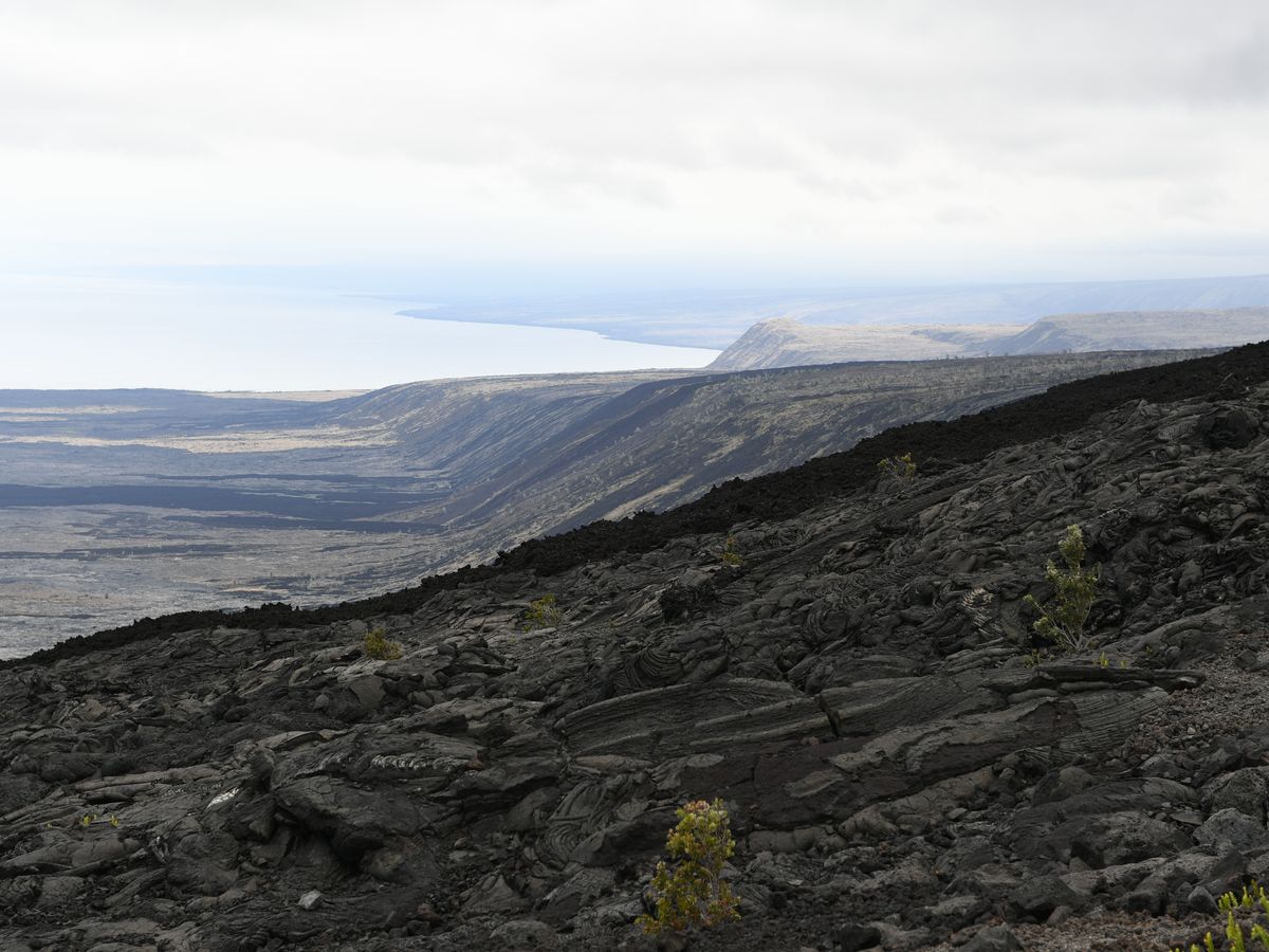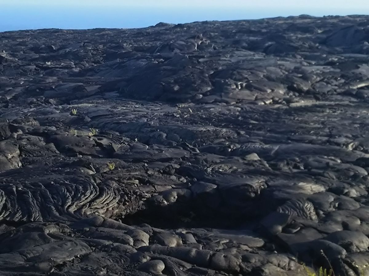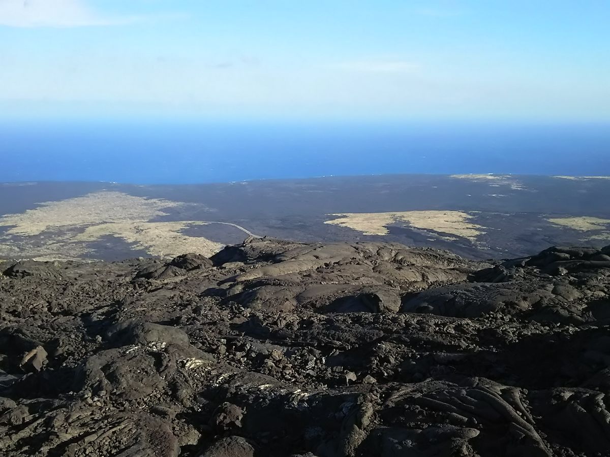 溶岩が流れて海まで続いている様子が良くわかります。ここから海を見ると今まで見てきた溶岩大地が結構高い場所なのがわかります。