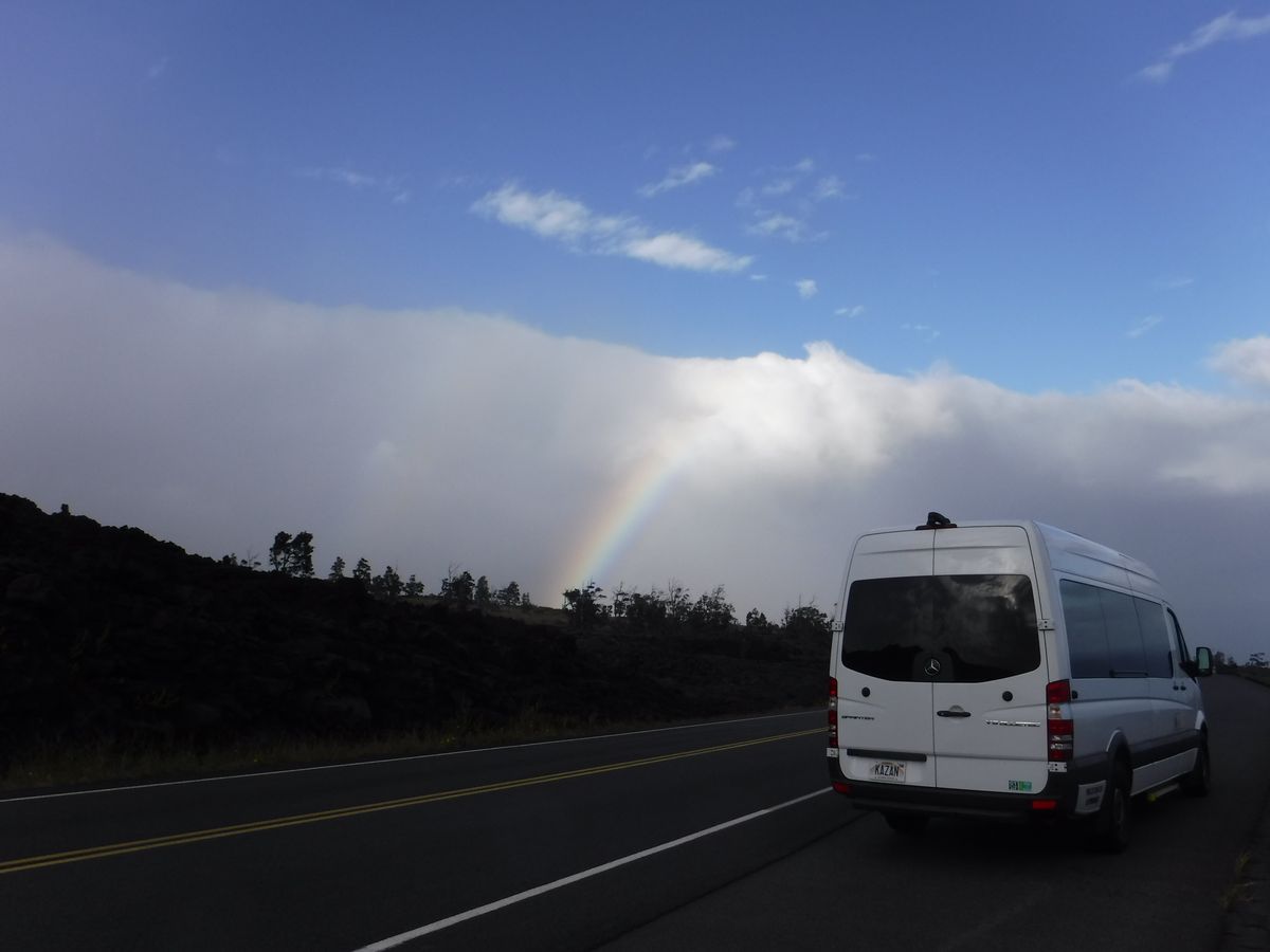 ふきもぎ様、ツアーへのご参加ならびに5つ星のご評価を頂き、ありがとうございました。雨上がりの青い空に浮かんだ虹と、1日皆様をお乗せして頑張ってくれるメルセデスベンツのツアーバン「KAZAN」号のお写真もご共有頂き、心よりお礼申し上げます。弊社でご用意しております2台のベンツ車のうち、こちらのお写真の車両の名前が「KAZAN」号です。なぜそんな名前か・・・というのは、当日のお楽しみにしておきましょう(笑)!ハワイ島来たら外せないローカルスイーツ、創業40年の老舗・TEXドライブインでのフワフワのマラサダ、そして、ハワイ島で一番美しいといわれ、雄大な姿が印象的なアカカ滝も、あわせてお楽しみ頂けご様子、こちらのコースに絶対の自信をもっておりますコウジも、たいへん喜んでおりました!ハワイ島は本当に多彩な魅力がある島ですので、出来る限り、「溶岩」と「星」だけではない、もっとディープなハワイ島をご案内したいと考えた結果、こちらのコースが出来上がりました。そんなもりだくさんのコースを切り盛りするのコウジは、ふきもぎ様のおっしゃる通り、ハイクオリティで巧みな話術で、皆様にハワイ島の知識をたっぷりとお話しするプロガイドです。12時間という長時間ツアーですが、散漫にならず、「あっという間に過ぎた」と感じて頂けますよう、日々頑張っております!ハワイ島はまだまだご紹介したいポイントがたくさんあり、私たちも、もっともっと・・・という思いでいっぱいです。ハワイ島はいつでも変わることなく、ふきもぎ様をお待ちしております。またぜひ、戻っていらしてくださいね!お待ちしております。