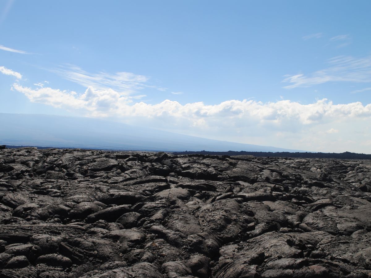 キラウエア火山に向かう途中は溶岩の台地が地平線まで広がり感激!