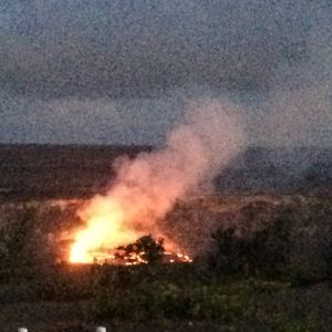 キラウエア火山では小雨が降ってましたが、日没後に真っ赤な火口を見ることができました。