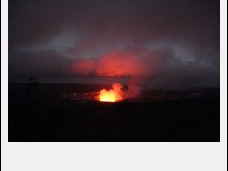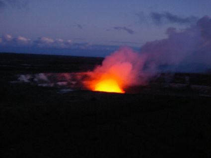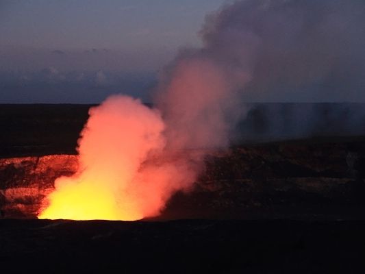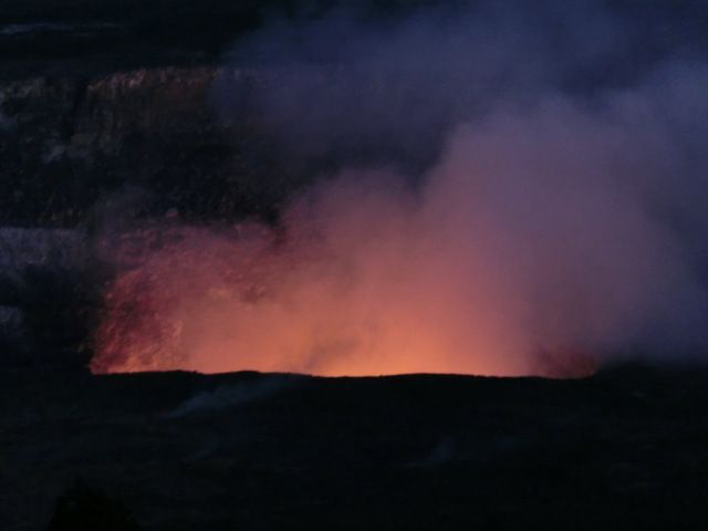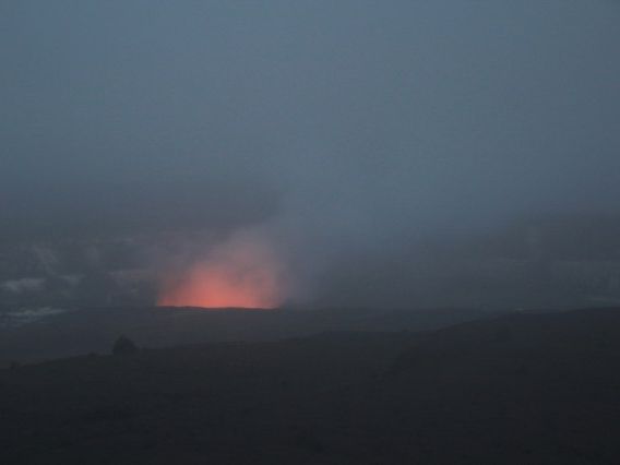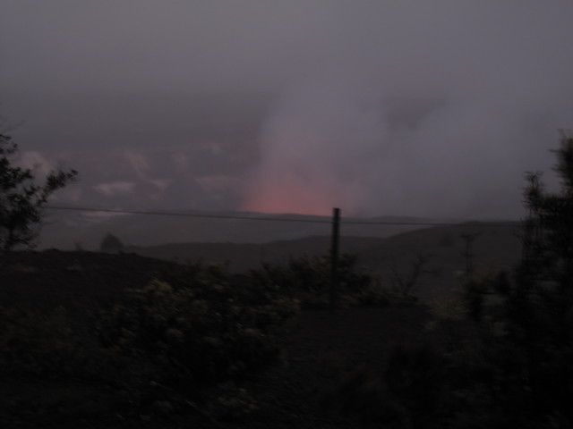 キラウエアのどろどろした溶岩はみれませんでしたが、日がくれてからの絶妙なタイミングで火口から炎があがる様子を遠めにですが、見ることができました。