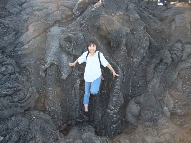 前日と同じ経路をたどりましたが、下車する所がビッグアイランドキャンディーズ以外は違っていたので良かったです。そして楽しみのキラウエア火山はハレマウマウ火口だけでなく、別の場所からの景観に鳥肌がたつほど感動しました。ペレの髪の毛や涙も自分の手で探すことができたり、何といっても溶岩台地に腰掛けてのお弁当タイムが素敵でした。夕刻から再びハレマウマウ火口に行っての感動は一生忘れられないでしょう。やはり、夜でなければ阿蘇山や桜島と同じ!と思いました。夕闇を迎えたころの星空観測も感動!もので、天の川って、本当に星の集まりだったんだな~!と改めて感じました。