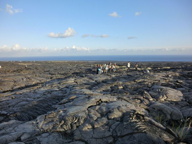 ハワイ島では、空港から少し車で走っただけでもすごい溶岩大地は見れますが、このハイキングで訪れた場所は、圧巻の景色でした。また、夕日が沈む時間帯に噴火している火口に連れて行ってくれるので、赤い炎が見れ、大満足でした。