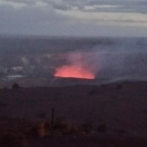 キラウエアは暗くならないと赤い炎がみえないので、それまで外でお弁当を食べたり、滝を見たりしました。いよいよ夜になるとキラウエア火山がよく見えるところに移動し、鑑賞。真っ赤な炎が上がり日本では見れない幻想的な雰囲気でした。