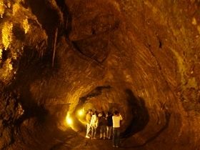 火山見学では、溶岩トンネル内の散策からはじまり、博物館見学、海岸で溶岩流観察のメニューです。