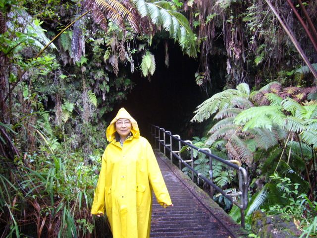 その後ヒロの町から「メリモナーク」の会場を横目に通り過ぎ、「ビッグアイランドキャンディー」へ。それから火山国立公園「ジャガーミュージアム」でのガイドさんの丁寧な説明を受け、ラバチューブ、カラパナの溶岩トレイルへ。
