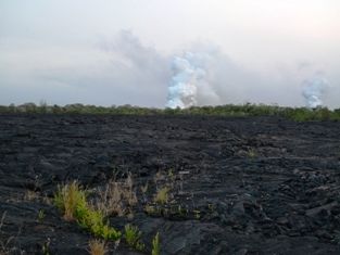 さて、今度は溶岩が海に流れ込むところを見に行きます。