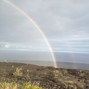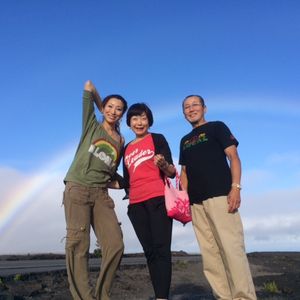 この度は、当ツアーへご参加頂き、ありがとうございました。ツアーの中で見られる様々な色彩に、「大感激!」して頂きましたこと、当日のガイド・マイクもたいへん喜んでおりました。スコールに見舞われてしまったときは、「ああ、雨が・・・」と少しがっかりされたかもしれませんが、そのあとには大自然からのすてきなプレゼントがもらえたようですね!台地が広大なハワイ島にかかる虹はひときわ大きく、美しい半円を描く姿が時々見られます。緑の草原にかかる虹、真っ黒の溶岩台地やハレマウマウ火口にかかる虹、青い海をバックにかかる虹、そして、夜空にかかる幻の虹・ムーンレインボーなど、どんな虹に出会えるかは、ハワイ島旅行でのお楽しみのひとつ♪ 6/19の虹が、KARASUMA-OIKE様の心のの中にずっと残る、素晴らしい光景でありましたように!(^^)