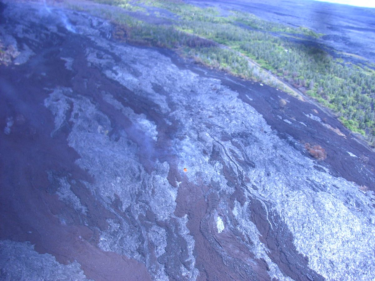 9月10日にこのツアーに参加しました。活火山の多いハワイですが、ここ最近、地上からは「流れる赤いマグマ」は見れないとの事前情報があったので、一番の目的はそれを見る事でした。あくまで自然相手なので、これはタイミングの問題ですが、テレビや雑誌などで見るものは、とめどなく流れる絵ばかりだったので(古いものを見すぎかな??)ヘリならば見れるかなという大き過ぎる期待を込めた分程はマグマを見れませんでしたが、いやいや、やっぱり地上からは見れないハワイの自然の力、壮大さを空から眺めた時間は貴重なものとなりました。結局は、岩盤の下を流れる「赤いマグマ」が小さくですが見れましたし、自分が参加したこの時期はちょうどプウオオ火口から溶岩流が海に流れこんでいたので、小規模?な海底噴火でも見ているような感じでした。他にも、偶然ですが、綺麗な虹を見れたりと盛りだくさんの内容でした。