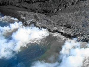 海岸では海に流れ込む溶岩と白い煙がはっきり見えました。