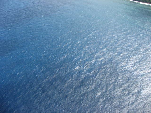 ハプナビーチ近くのヘリポートを飛び立ち、眼下に