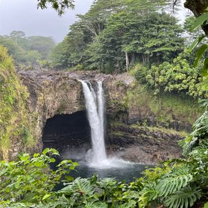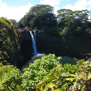 レインボー滝、雄大な景色のキラウェア火山、溶岩大地の上でのロコモコ弁当。