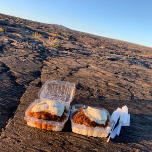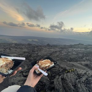 夕飯は溶岩がゆっくり広がったことでできた溶岩台地で、サンセットを見ながらロコモコのお弁当(ロコモコ発祥のお店の弁当)を食べれて爽快でした。