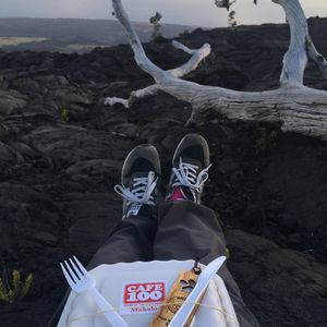 海を見渡せる溶岩大地の上でディナー!ロコモコじゃなくて残念でしたが、非日常な場所で食べて思い出に残りました。