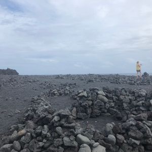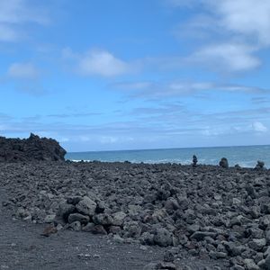 新しくでした溶岩の海岸は、黒い岩がゴツゴツしていて圧巻でした。行く途中は細く坂が多い道で、もし個人のレンタカーだと大変そうでした。