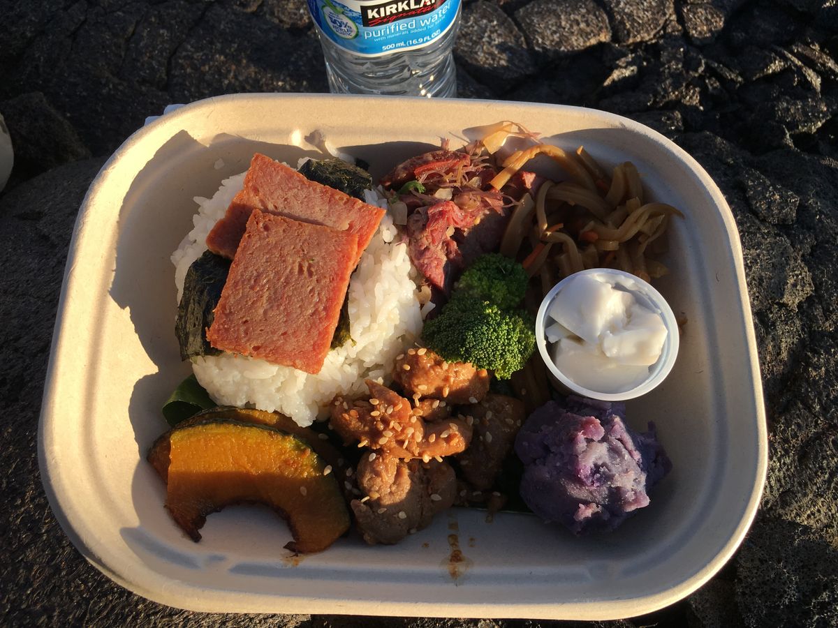 キラウエア火山の溶岩の上で食べたハワイアンのお弁当も美味しかったです。