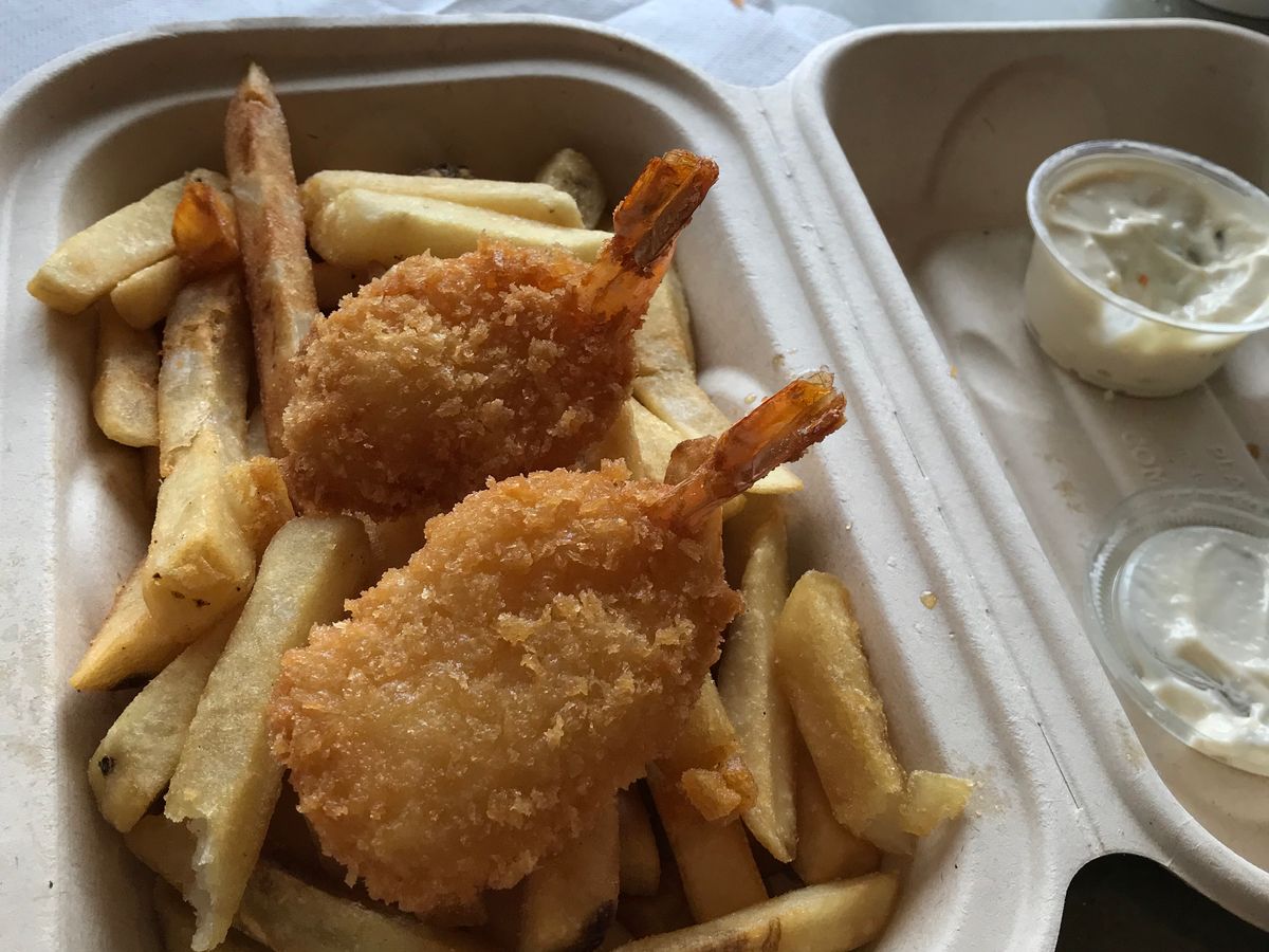 途中休憩で食べたマサラダ、エビとポテトがとて