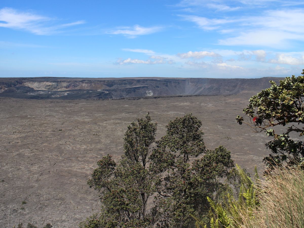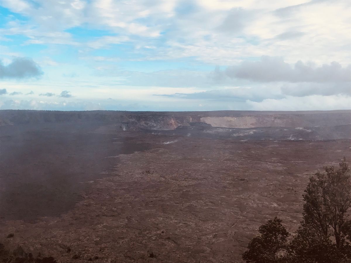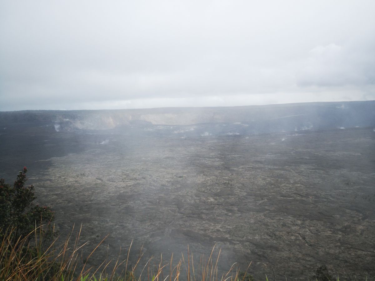 ◎キラウエア火山は、平坦な場所にある噴火口を見学。駐車場から3分。煙が多少出ている程度