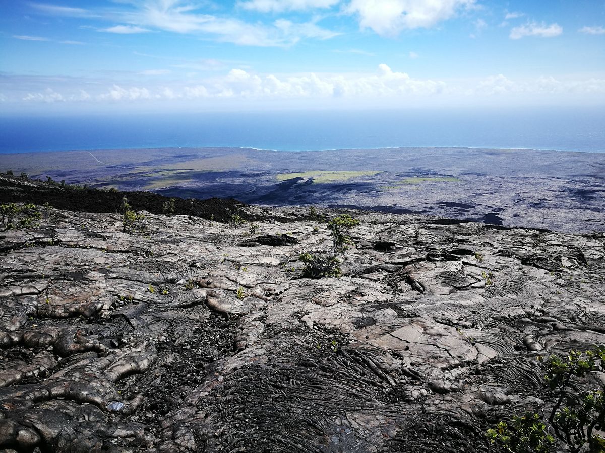 現在ドロドロの赤い溶岩はハワイ島では見られないとのことでしたが、黒い溶岩でも十分すぎるほど迫力があります。