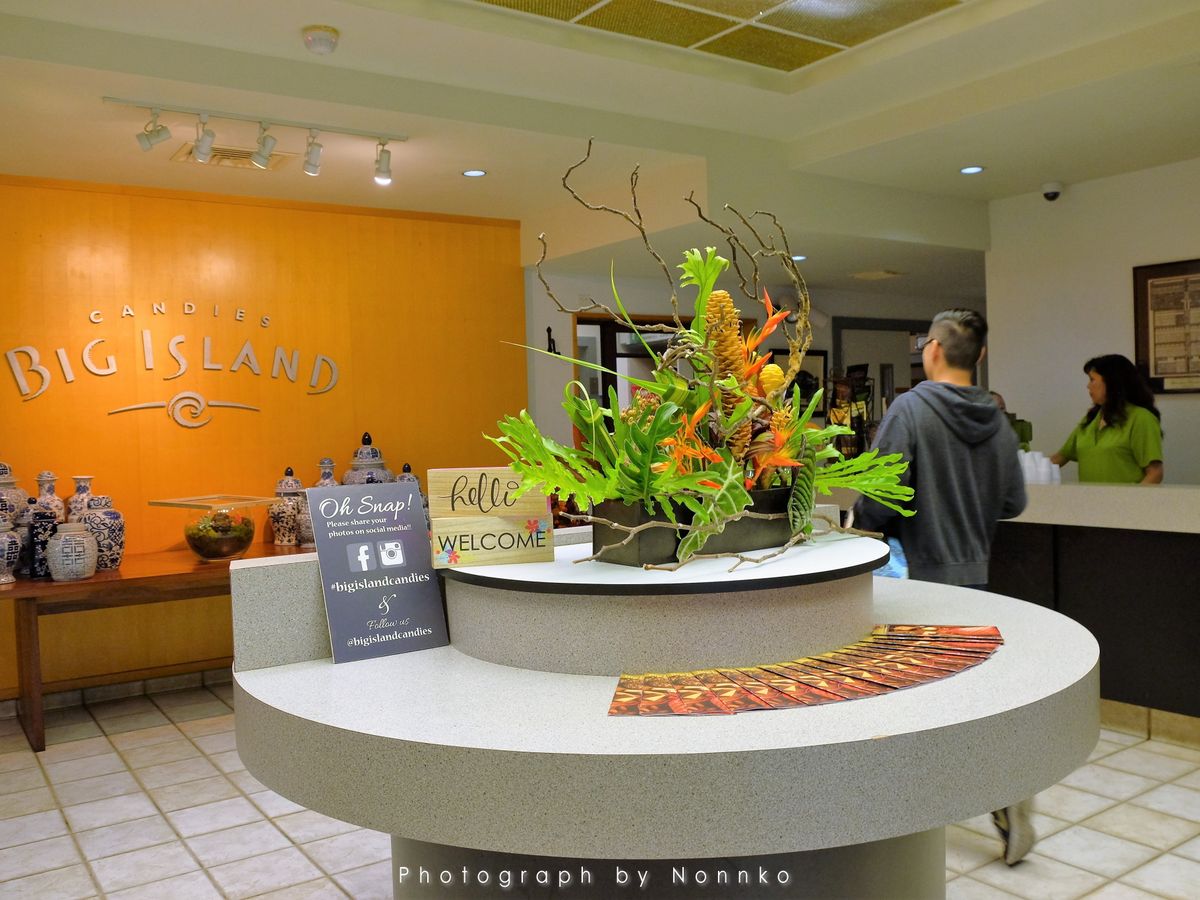 ・本社のビッグアイランドキャンディーズの方が安く買えるとのことで気合い入って買い物。びっくりしたのが来店したらコナコーヒーとクッキー2つ貰いお出迎え。ここの商品で気になるものがあれば、言えばどれだけでも試食OK。(※コーヒー以外)主にクッキーとコーヒーとチョコですがアイスクリーム辺りのレジ近くにひっそりとパイがあります。フレーバーが3種類あるのですがこのパイおススメですw