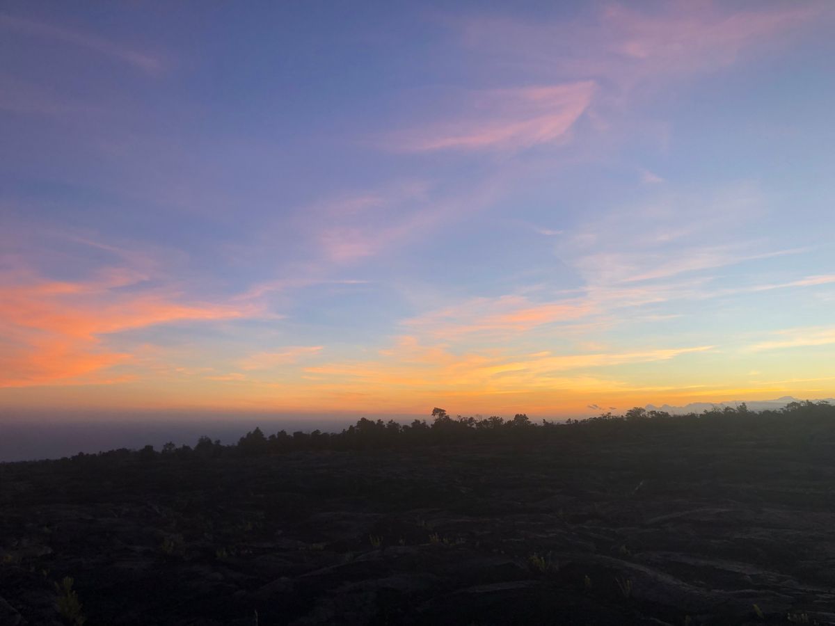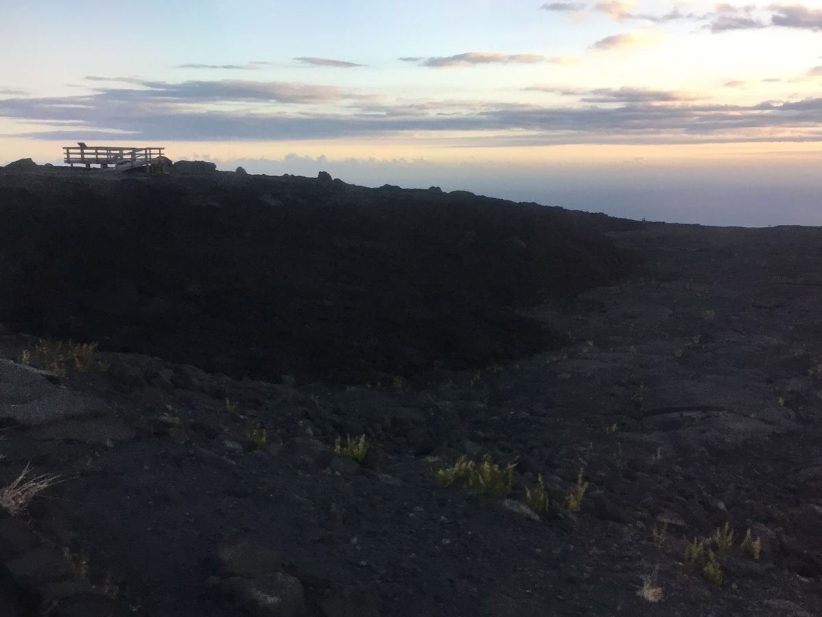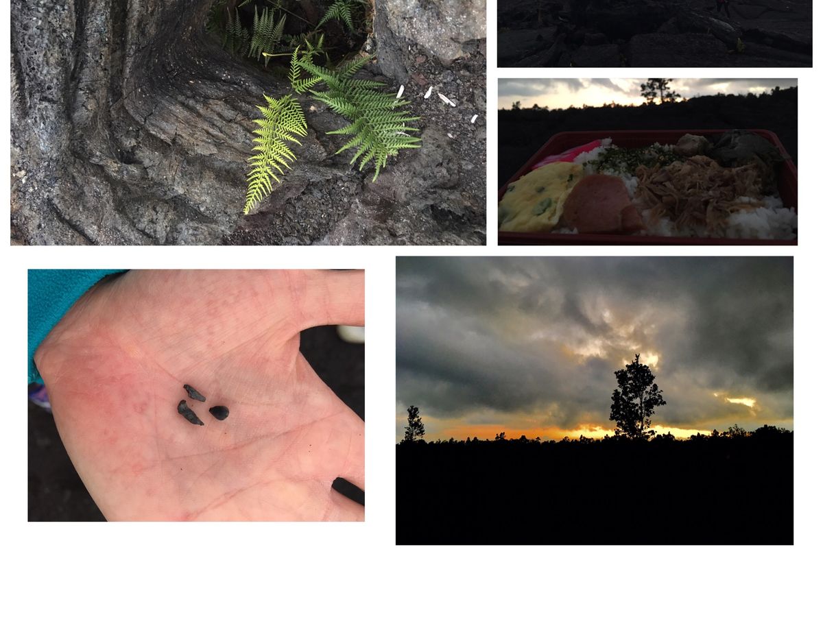 事前に火山公園の入園が再開されて、溶岩台地の上でサンセットを見ながらハワイアン弁当を食べることが出来ました。世界遺産で弁当・・・・とても貴重です。なんとなくお尻の下からパワーを感じたような。