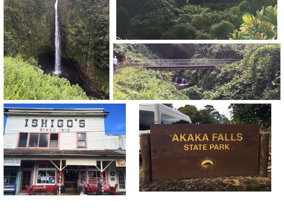 お迎えがホテルまで来て、パワースポットの洞窟、絶景ワイピオ渓谷、素晴らしい滝 アカカ、大人気マラサダのドライブイン、ヒロの街とBig Island Candies でお買い物をして、世界遺産のキラウエア火山国立公園見学してピクニック夕食、そしてシメは満天の星!