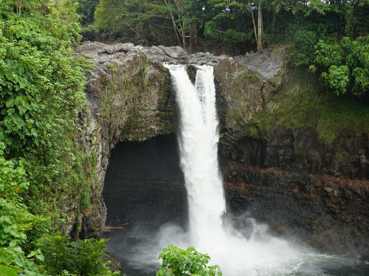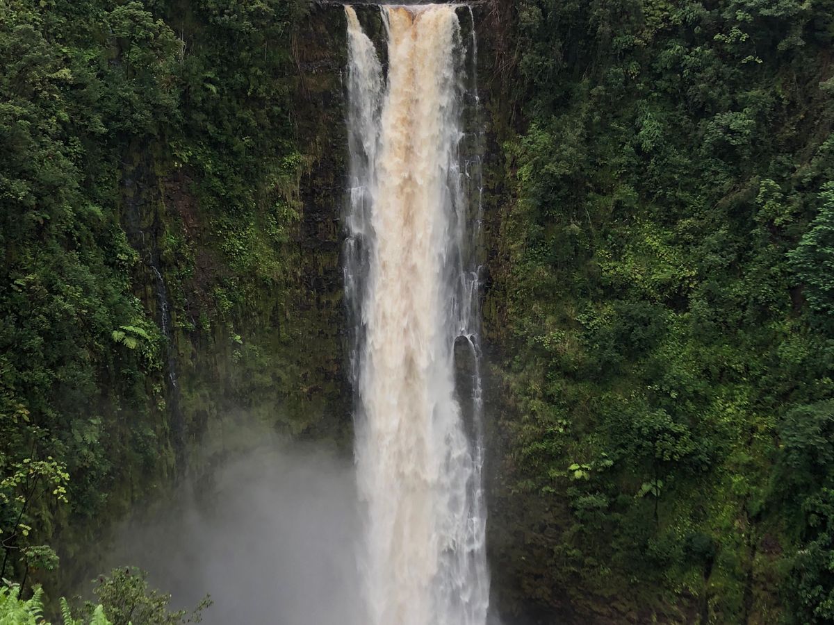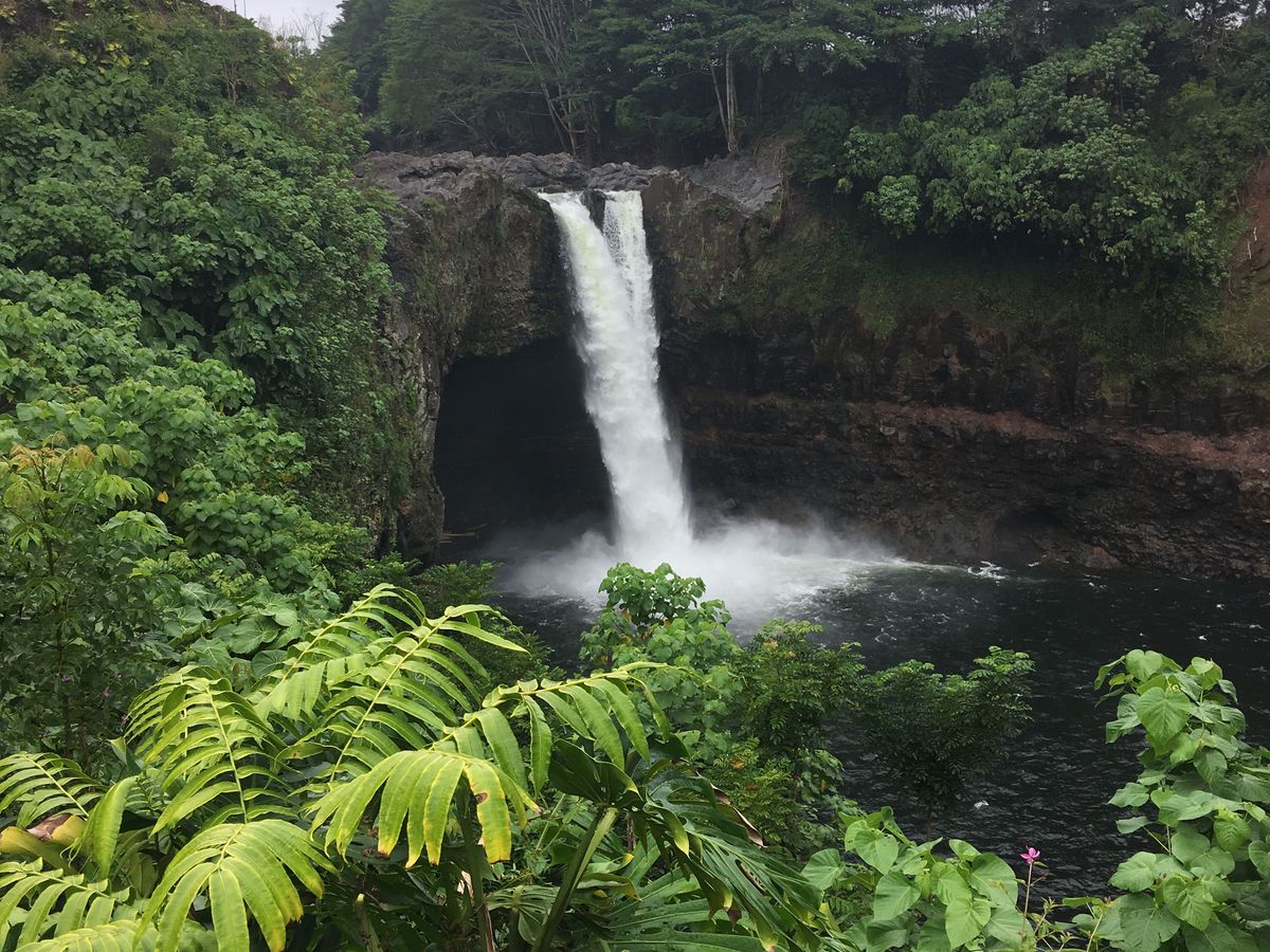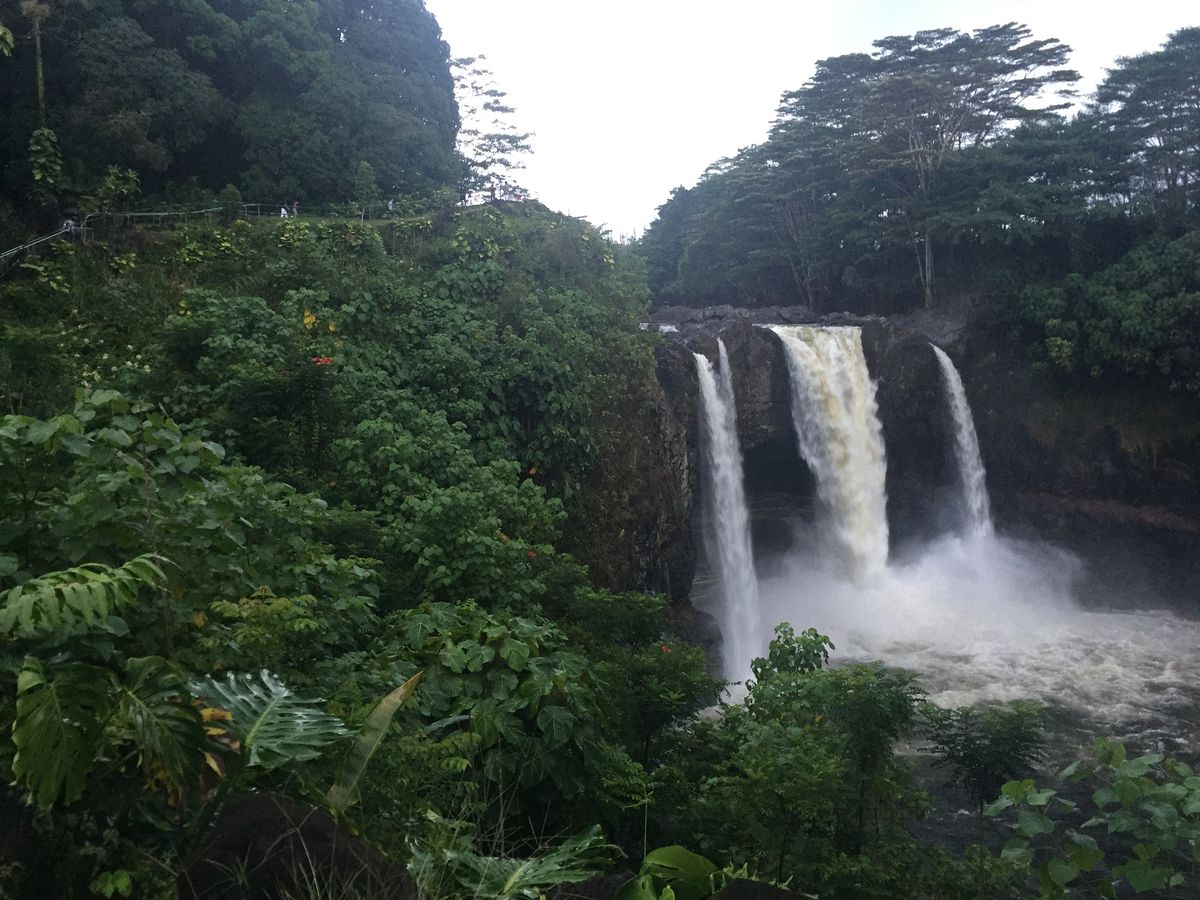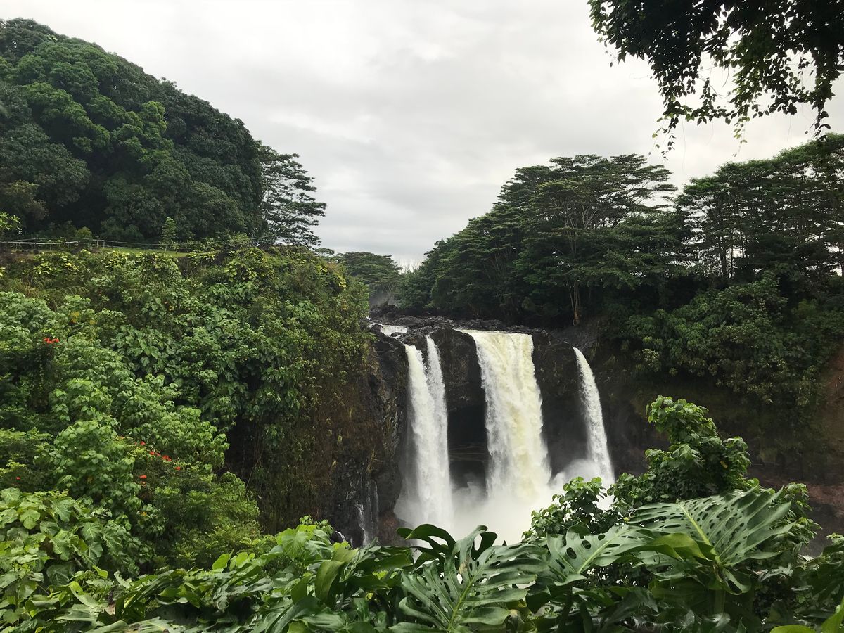 当日は、通過したハリケーンの影響の残るどんより雲と時折降る雨であいにくのお天気でしたが、移動中に前が見えなくなるほどのスコールに見舞われたり、上流から流され皮が剥がされた大木が浮かぶ滝壺などが見られて、Big Islandならではの大自然の力強さを肌で感じることができました。