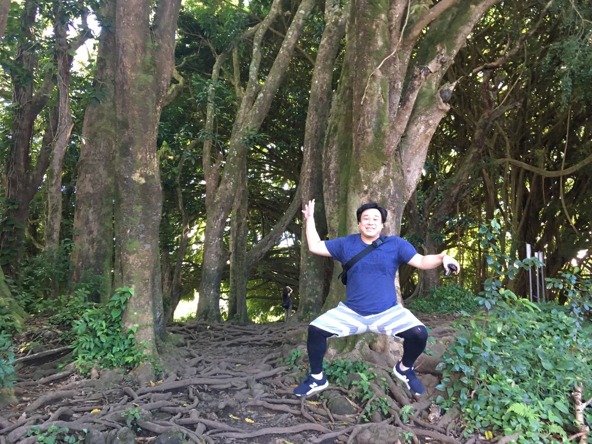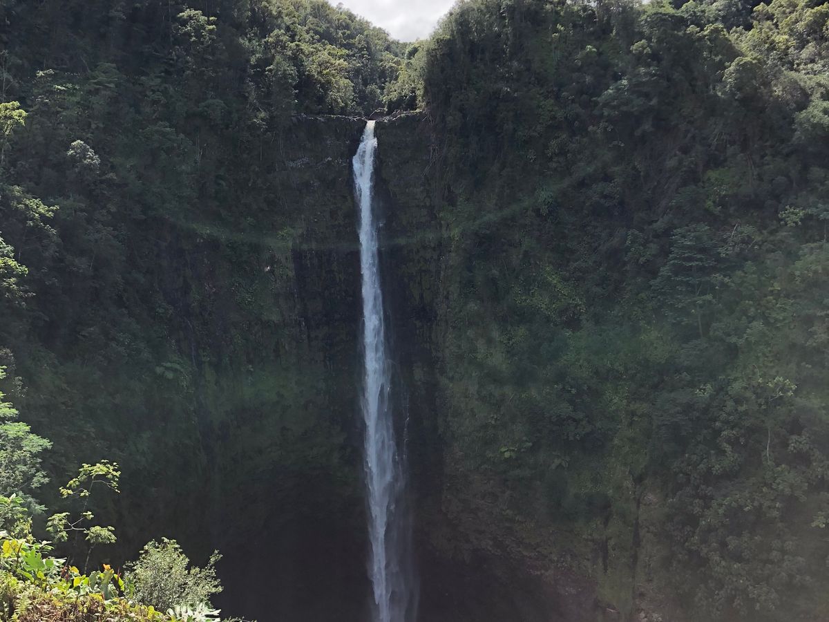 火山、星空以外にもハワイ島の観光名所を案内いただきました。アカカ滝という130mほど(日光の華厳の滝よりも高い!)の滝があるところに行く道中は植物が生い茂る道を歩くのですが、ハワイ島ならではの植物を見ることができたのは面白かったです。