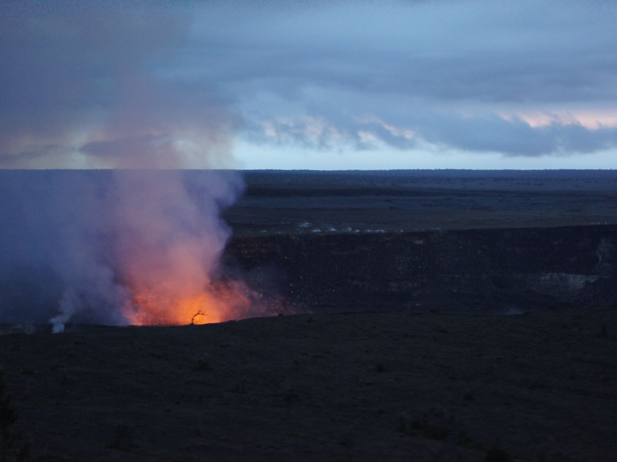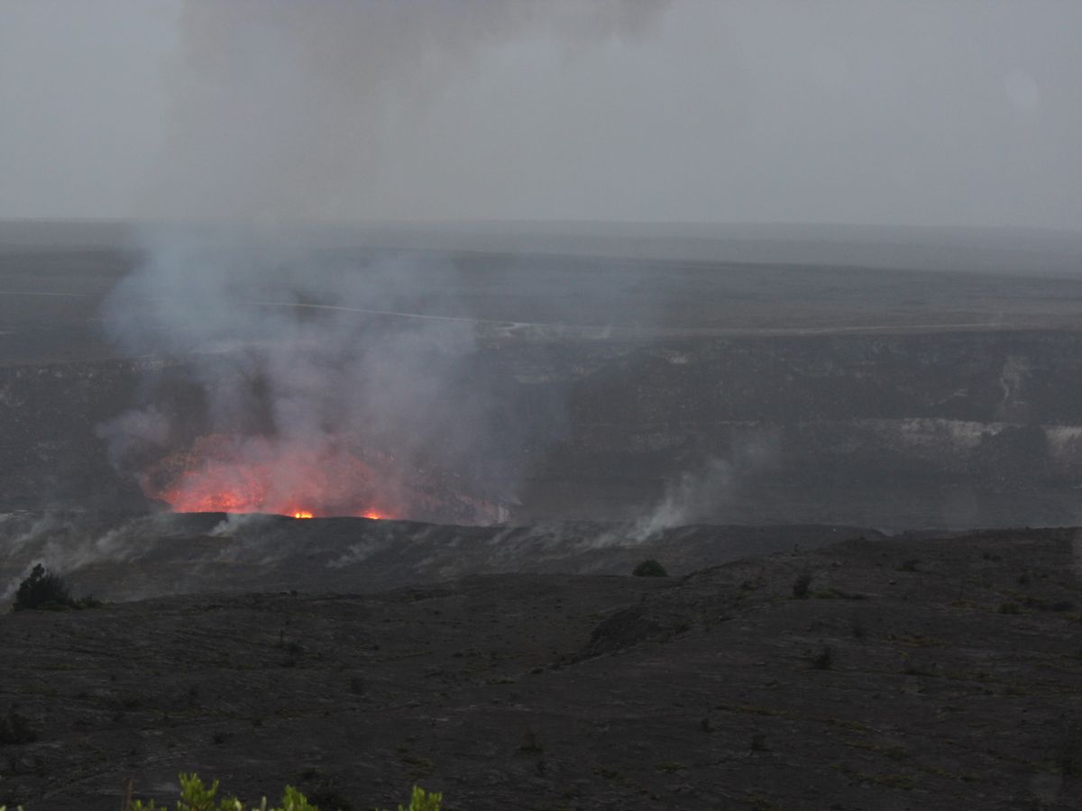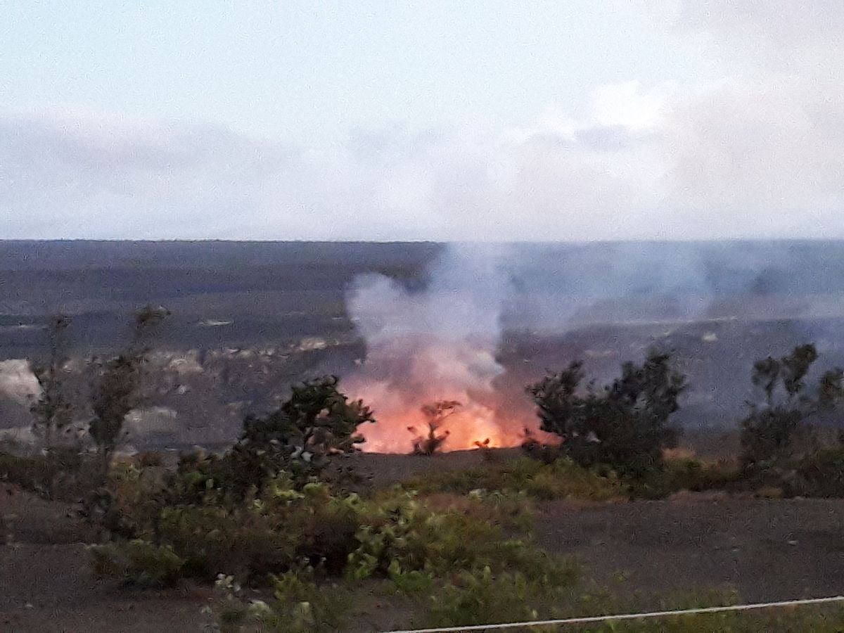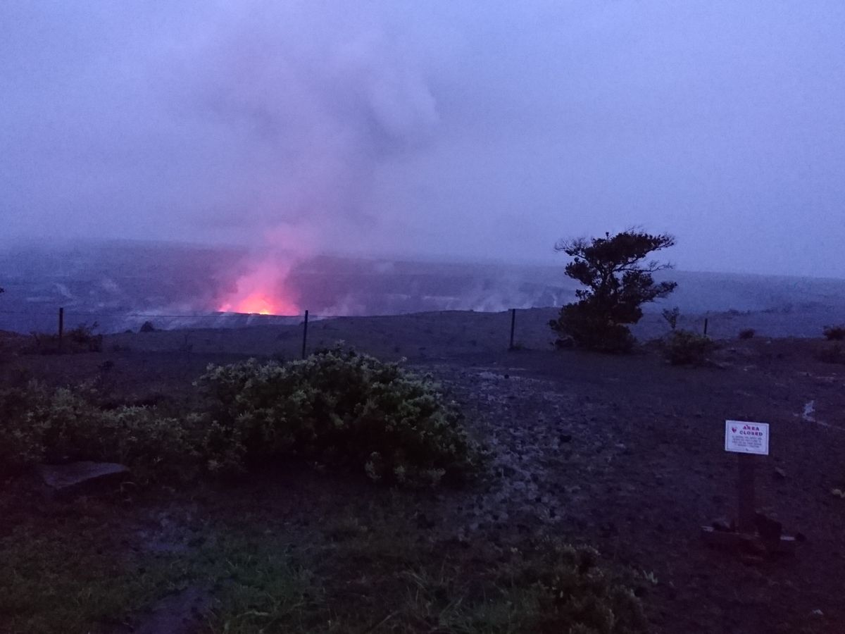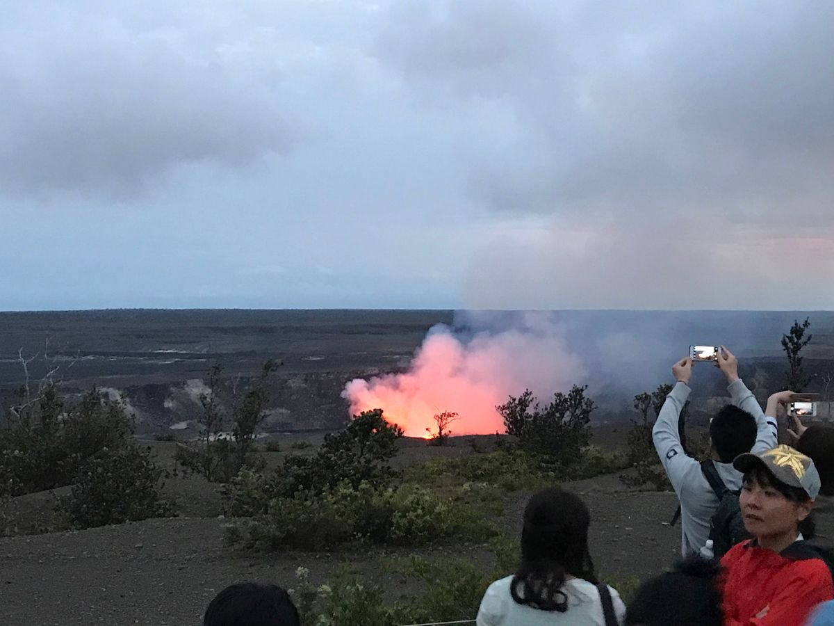 キラウエア火山の火口からは、噴出するマグマが!