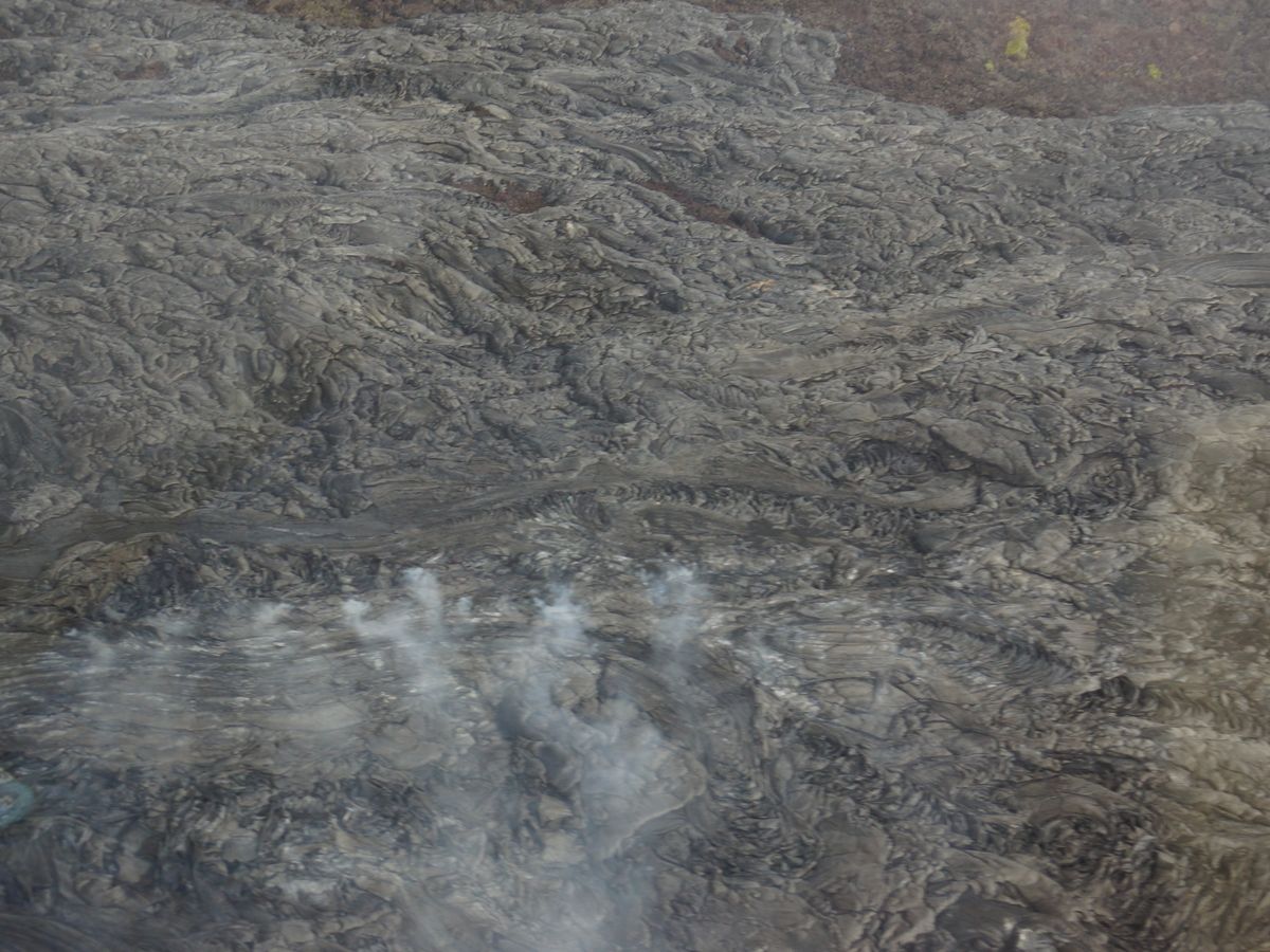 期待していた溶岩は成りを潜め、期待していた光景は見ることはできなかった。しかし、ヘリコプターで座った位置は、助手席の端で視界が良く遮るものがほとんどなかった。当日の天候は、雲が低く垂れこめ、プウオー火口へは近づけなかった。オーシャンエントリーは気まぐれなペレさんが意地悪して溶岩の流れを止めてしまい、見るべきものはほとんどなく、がっかりな空の旅となってしまった。