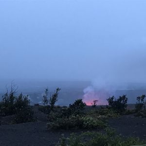 火山公園内はみどころを効率的にまわることができました。一番の目玉スポットと思われるハレマウマウ火口,到着したときはまだ明るく,しかも霧がかかっていて,あまりよく見えませんでした。