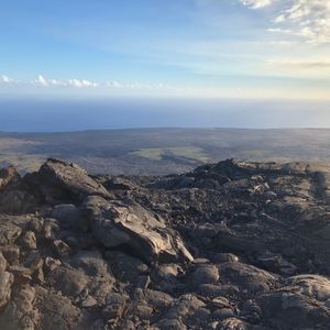 日没後に噴火口から噴き出す赤いマグマを直に見るととても迫力があり、地球が活きてるなと感じた瞬間でした。大自然のパワーを感じました。お昼は、キラウエア火山の広大な溶岩台地でお弁当を食べたのですが、天気も良かったので、更に美味しく感じました。
