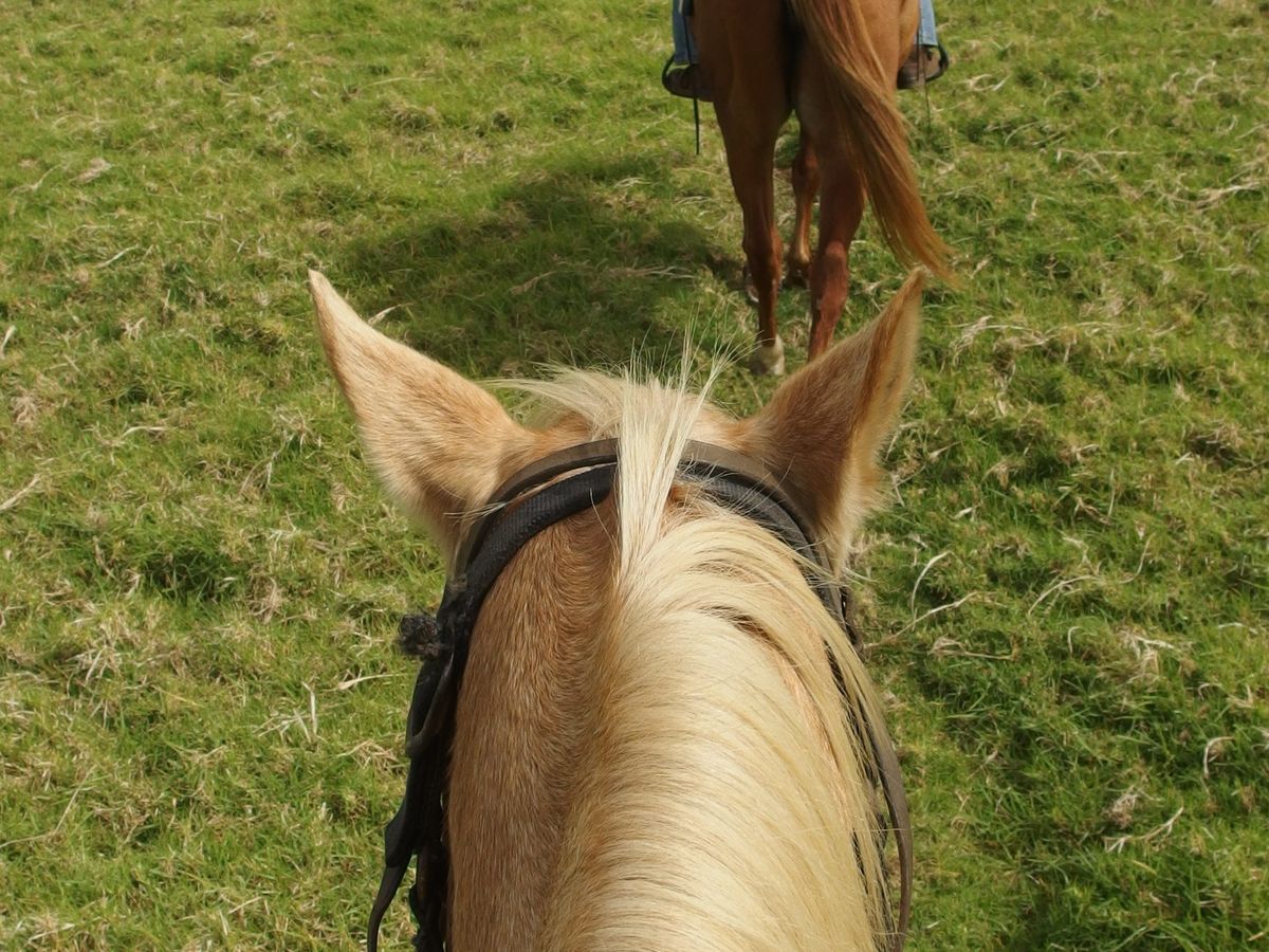 参加者全員の装備から馬に乗るまでに1時間弱かかりましたが、それから丘を上ったり牛の放牧場にお邪魔したり、牧場内をぐるりと1時間40分くらい乗馬。