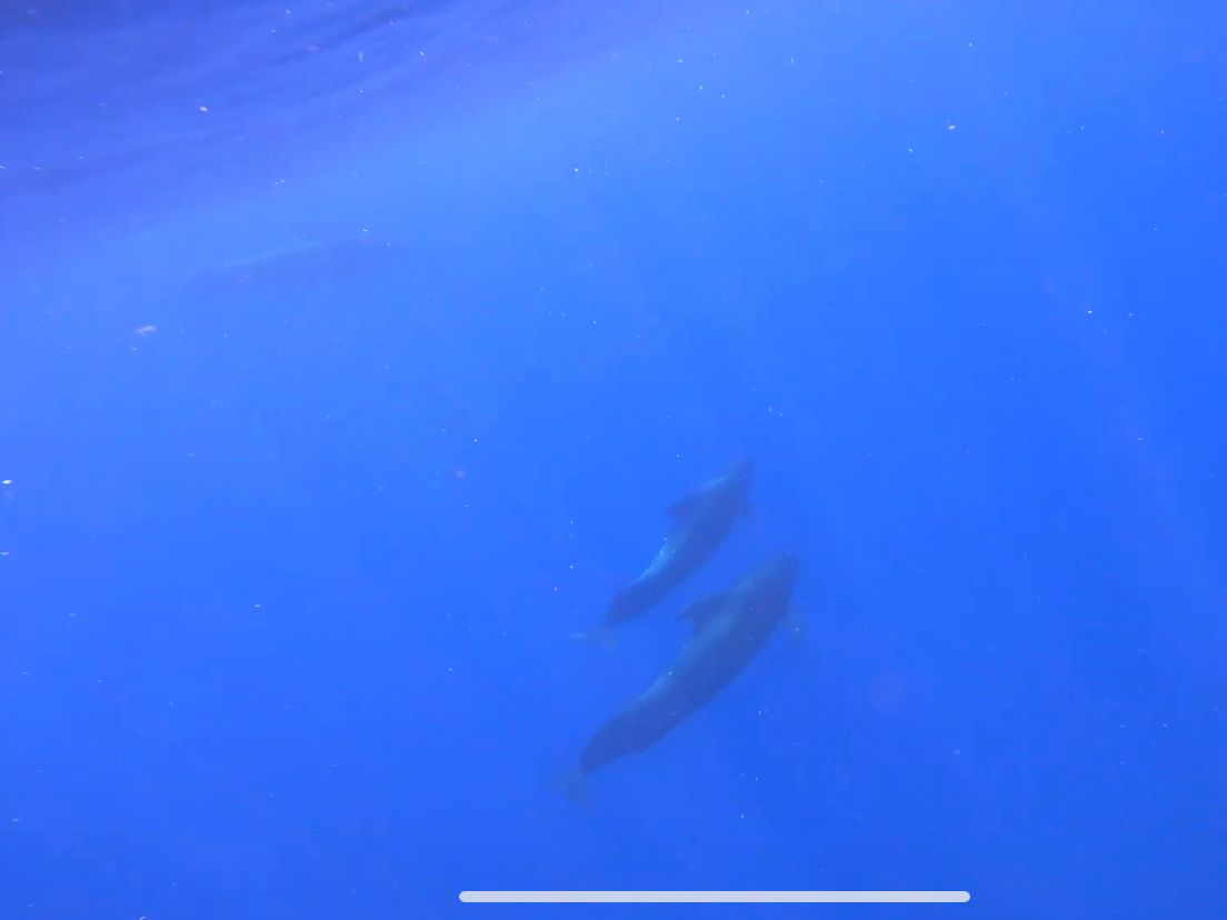 その後ボートに戻りまた先回りしてもう1本。ドルフィンスイムをしにきましたが、まさか「ホエールスイム」が出来るとは。しかも彼らはリラックスした感じでゆったりと泳いでくれていたので、急いで追いかける必要もなく、こちらもゆっくりと並走する形で長く泳ぐことができました。ガイドのまみさんが常にサメを警戒し追い払ってくれたので、安心して泳ぐことができました(コビレゴンドウの近くにはサメがいることが多いそう。この日もサメがいました)
