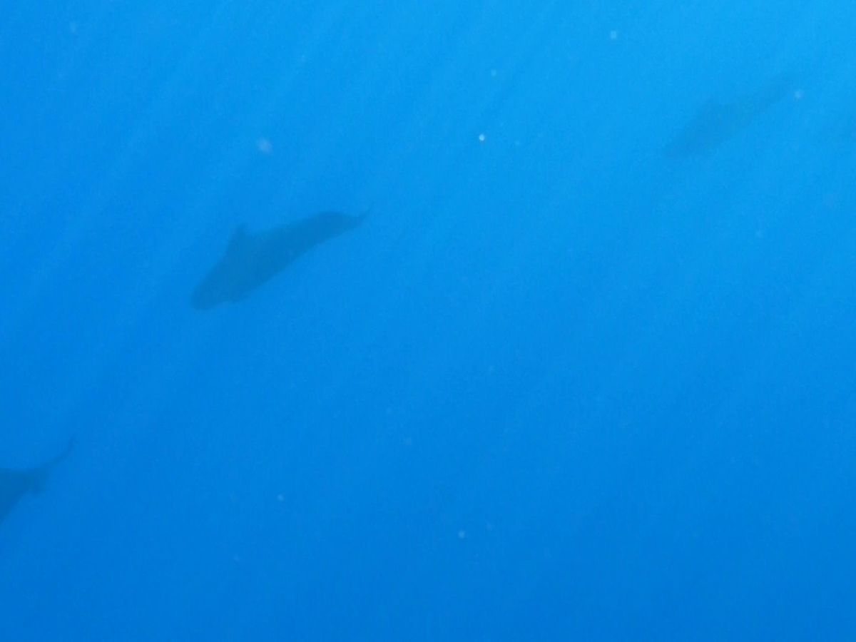 イルカの横を泳ぐ訳ではなく、イルカの進路に先回りしてイルカが下を泳ぐのを待っている感じでしたが、同じ場所を泳いでる感動がありました。