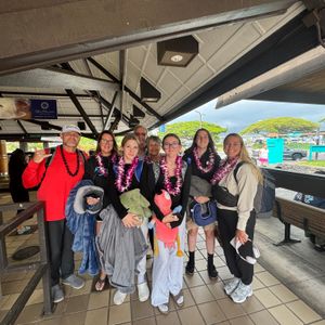 空港に到着してレイで迎えられるのはとても素敵でした。私たちを迎えてくれた方はとても親切で、家族全員とレイをつけた写真を撮ってくれると言ってくれました。彼は私たちが彼の島に到着したことを心から喜んでいるようでした。これは家族へのサプライズだったので、彼らの顔を見ることができて良かったです。レイは一日中持ちました。二つのことに注意が必要です。まず、私のフライト情報が直前に変更され、支払ったお金を失うのではないかと不安でしたし、到着したときに彼らがいないのではないかと心配でした。何度も電話をかけましたが、時差のせいでオフィスに連絡が取れませんでした。フライト変更について誰かが電話をかけてくれましたが、私は空の上でした。迎えの人がそこにいるのを見てとても嬉しかったです。しかし、もし同じようなことがあった場合は、必ず彼らに電話してください。次に、(私自身の小さな世界の中で)私だけが迎えられると思っていましたが、このパッケージを購入したすべての人に対して一人の迎えの人がいるので、私たちは前の家族が迎えられて写真を撮るのを待ちました。それはほとんど家族へのサプライズを台無しにするところでしたが、彼らはこれが起こっていることを全く知らなかったので、迎えの人に注意を向けるために私をじっと待っていてくれました。彼らはまだ驚いていました。