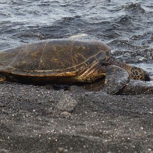 ③ プナルウ黒砂海岸ではウミガメのお昼寝見学