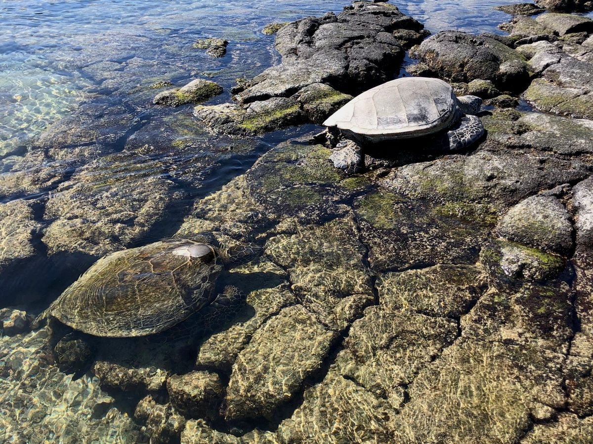 プナルウのマラサダはおやつに最適だし、黒砂海岸では泳いでいるホヌ、甲羅干しをしているホヌに出会えました。