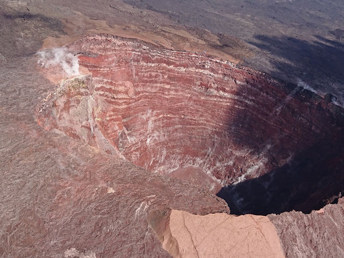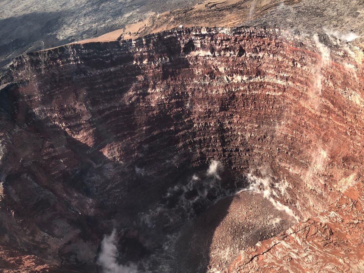 上空からは、キラウエア火山や溶岩、滝がよく見えました。