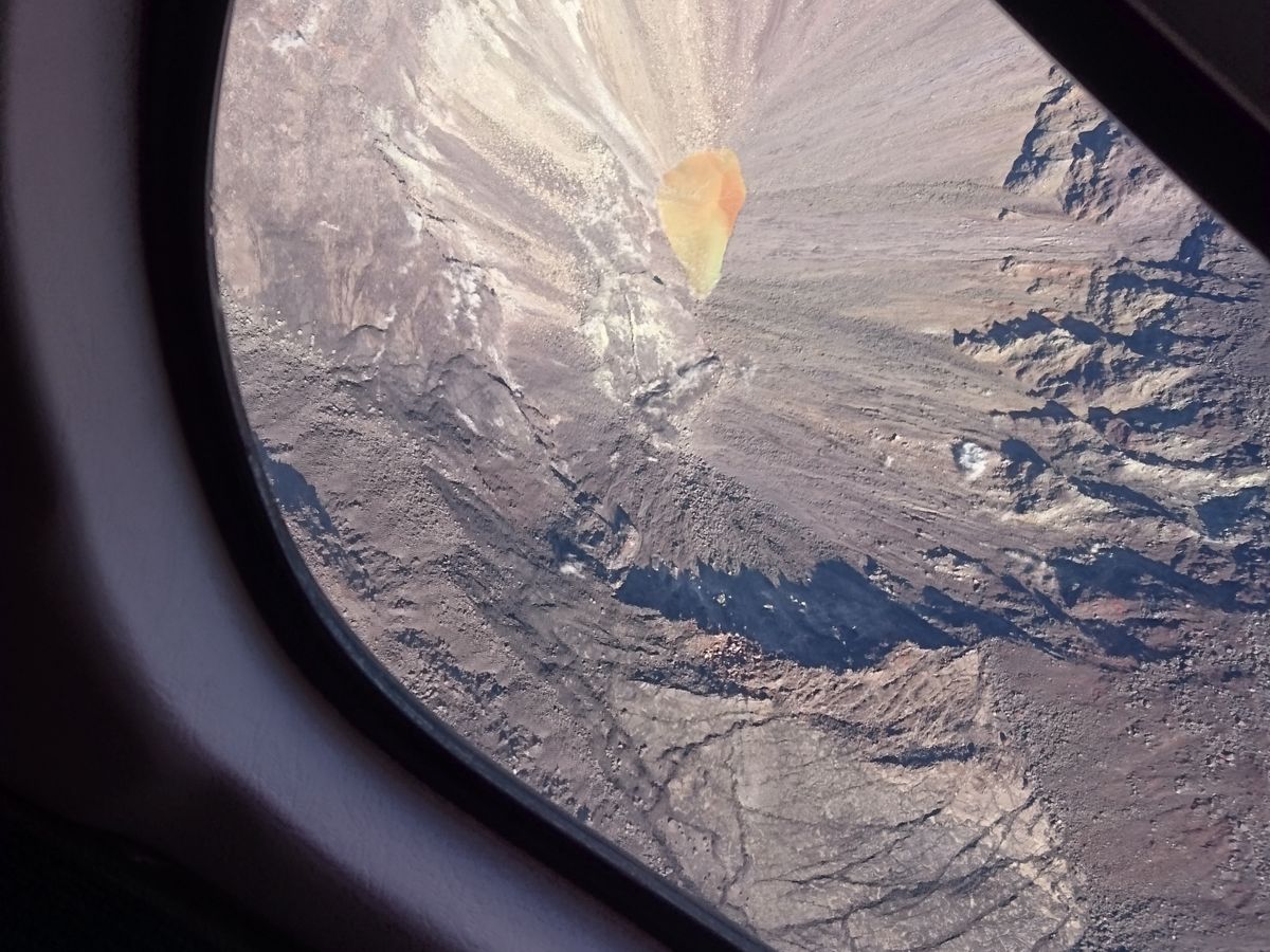 最後に、ヘリに乗るときには濃い色の無地の洋服で乗りましょう!私の前の方が白のアロハシャツを着ていらっしゃり、窓に反射して動画に映ってしまいました。(苦笑)