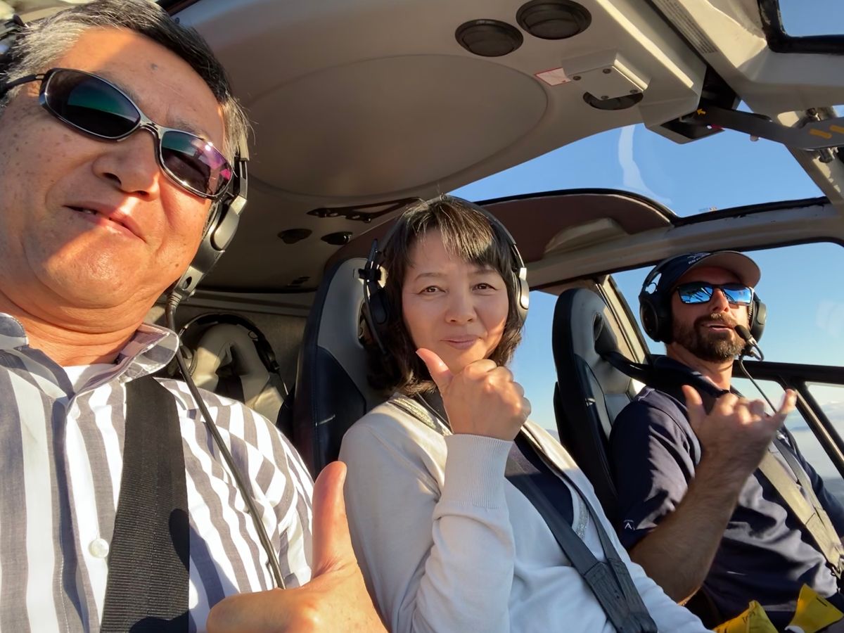 ヘリでの遊覧も気分が悪くなるくらい丁寧に
