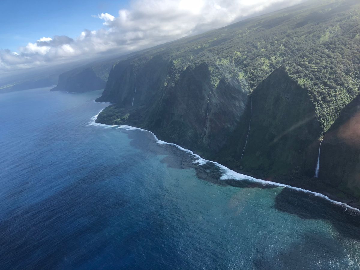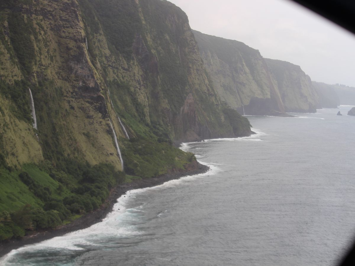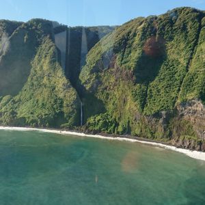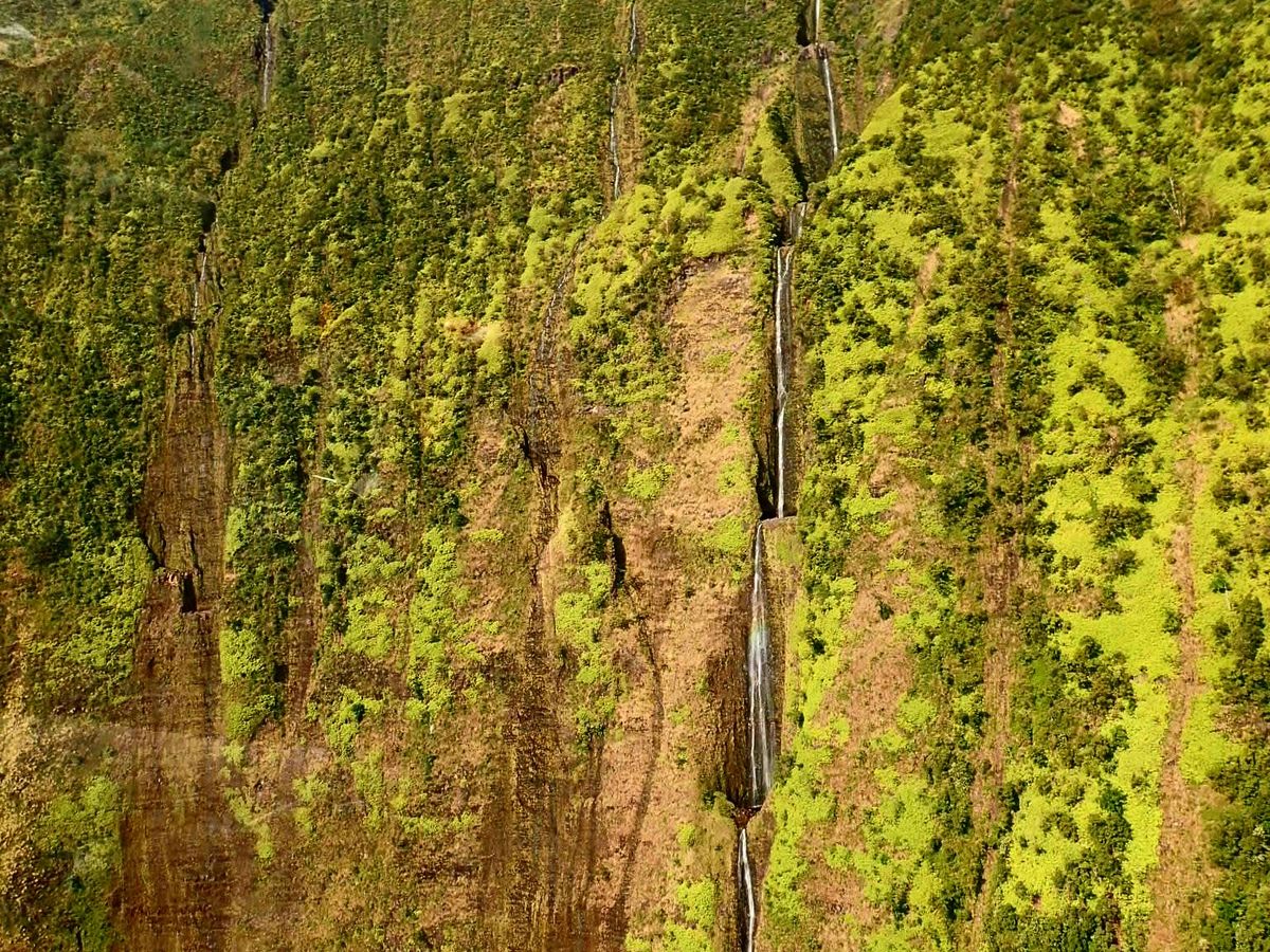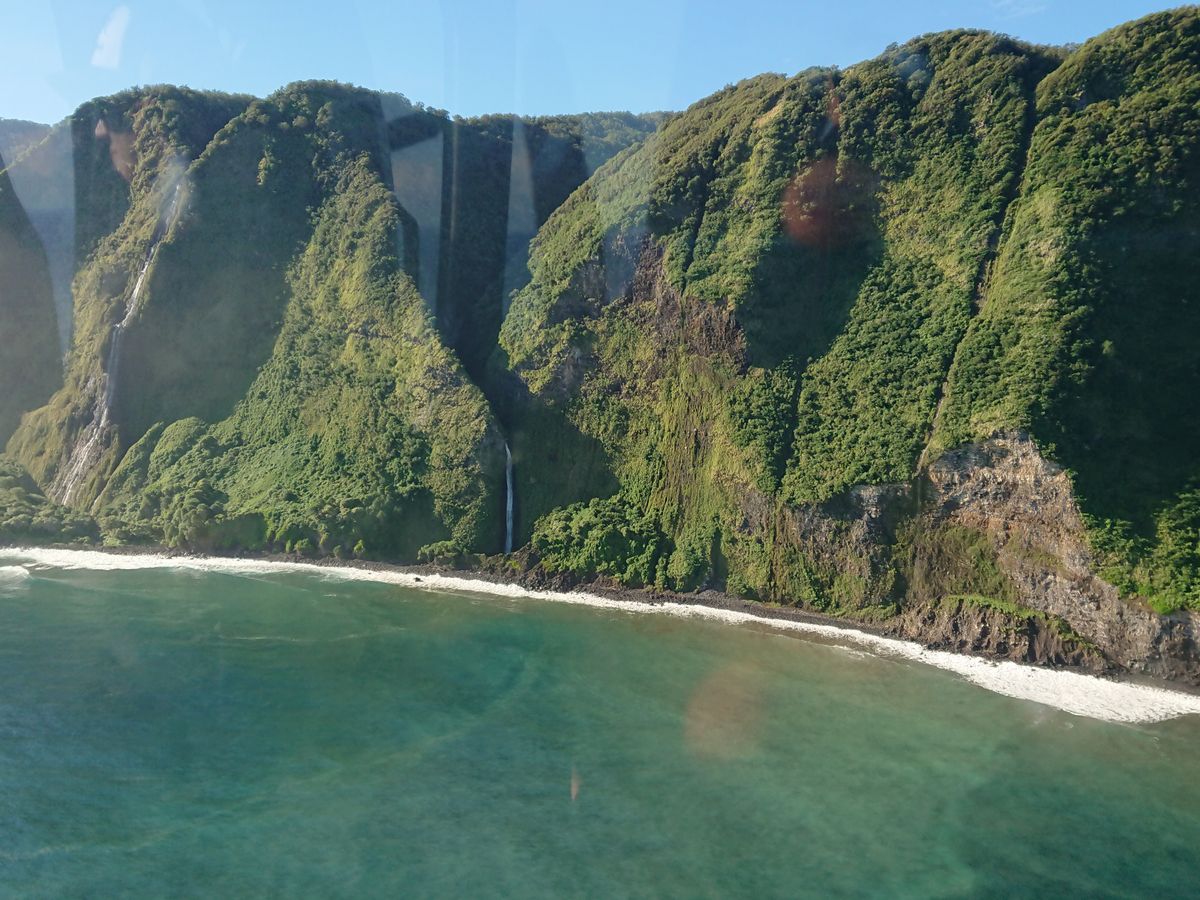 谷の中に入って行ったり、海に流れ落ちる滝を真上から見下ろすのはヘリからでしか見ることのない景色ですね。