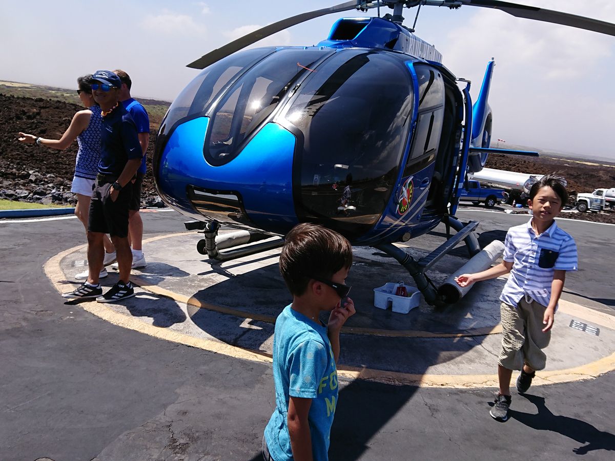 ツアー内容ですが、まず、ヘリコプターがとても安定しており、揺れない、うるさくないことにびっくり。念のため子供達は酔い止めを飲んでいましたが、必要なかったようです。逆に下2人は酔い止めで眠くなり、ほぼ寝ていました。。もちろん個人差はあると思いますが、船よりは全然酔いにくいと思います。キラウエア火山は8月現在活動が低下しており、溶岩流は見えませんでした。火口付近にマグマがボコボコしている様子は見えました。それよりも、渓谷付近の景色が最高でした。個人的にはこちらの景色の方がおススメです。あと、滝の近くに着陸するオプションを申し込んだのですが、これは絶対おススメです。ヘリコプターでしかアプローチできない滝を独り占めできます。